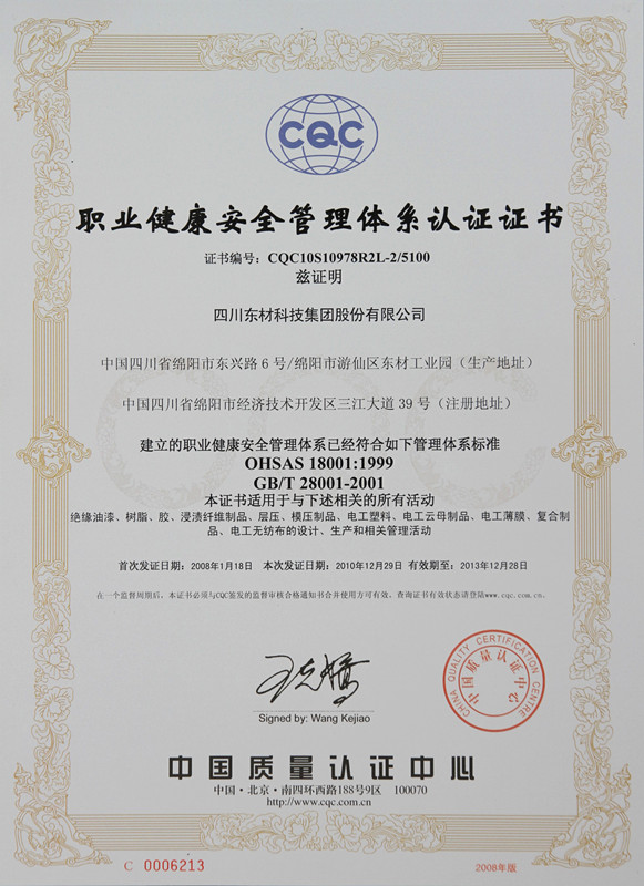 東材科技在國內(nèi)同行業(yè)企業(yè)當(dāng)中率先通過國際ISO9001的質(zhì)量體系認(rèn)證,通過ISO10012國際計(jì)量體系、ISO14001環(huán)境管理認(rèn)證體系、OHSAS18001職業(yè)健康安全體系、GBT 29490知識產(chǎn)權(quán)管理體系、GBT23331能源管理體系認(rèn)證企業(yè)、IATF16949汽車質(zhì)量管理體系認(rèn)證,不僅使公司產(chǎn)品質(zhì)量保障體系達(dá)到國際化的新標(biāo)準(zhǔn),而且為產(chǎn)品質(zhì)量的穩(wěn)定提供了強(qiáng)有力的保障。