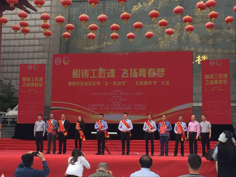 4月27日下午3點(diǎn),綿陽市游仙區(qū)慶祝“五一勞動(dòng)節(jié)”、“五四青年節(jié)”大會(huì)在越王樓廣場(chǎng)舉行。我公司新材料研發(fā)部部長(zhǎng)黃杰榮獲綿陽市游仙區(qū)2017年“工人先鋒”稱號(hào),并在本次大會(huì)上受到表彰。